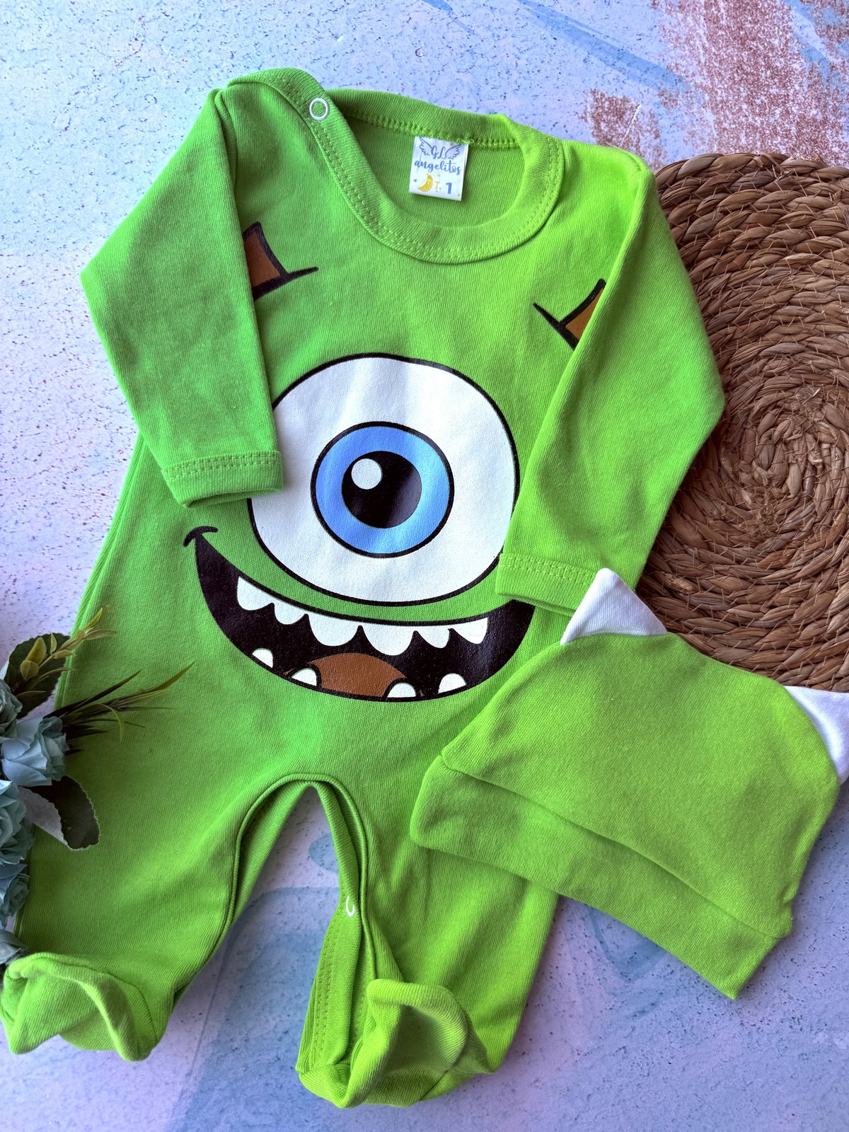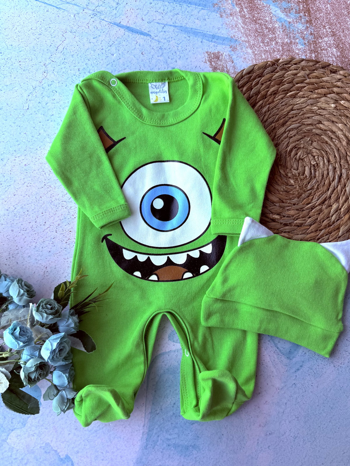 Incluye body con broches metalicos y gorrito con orejas.