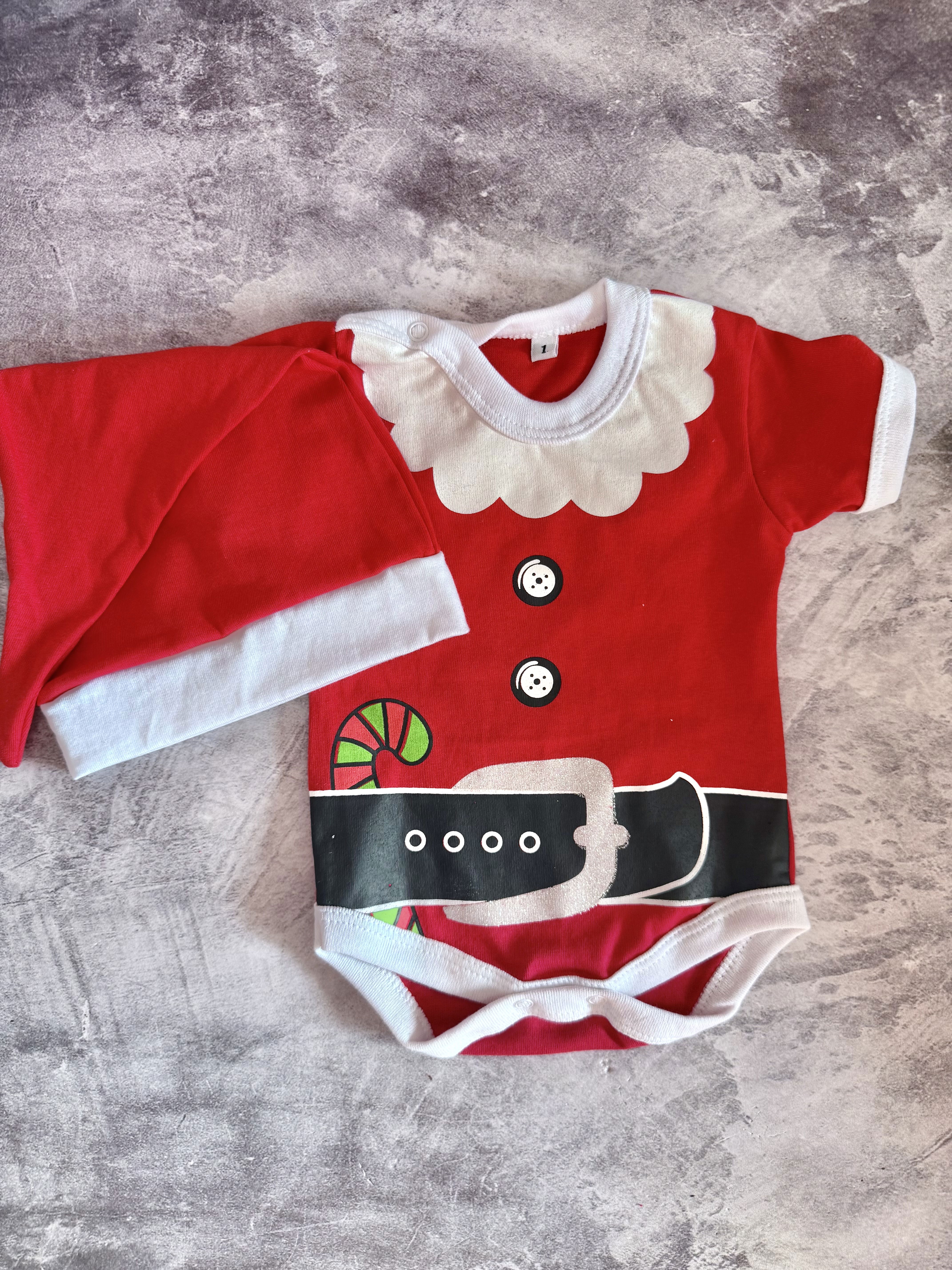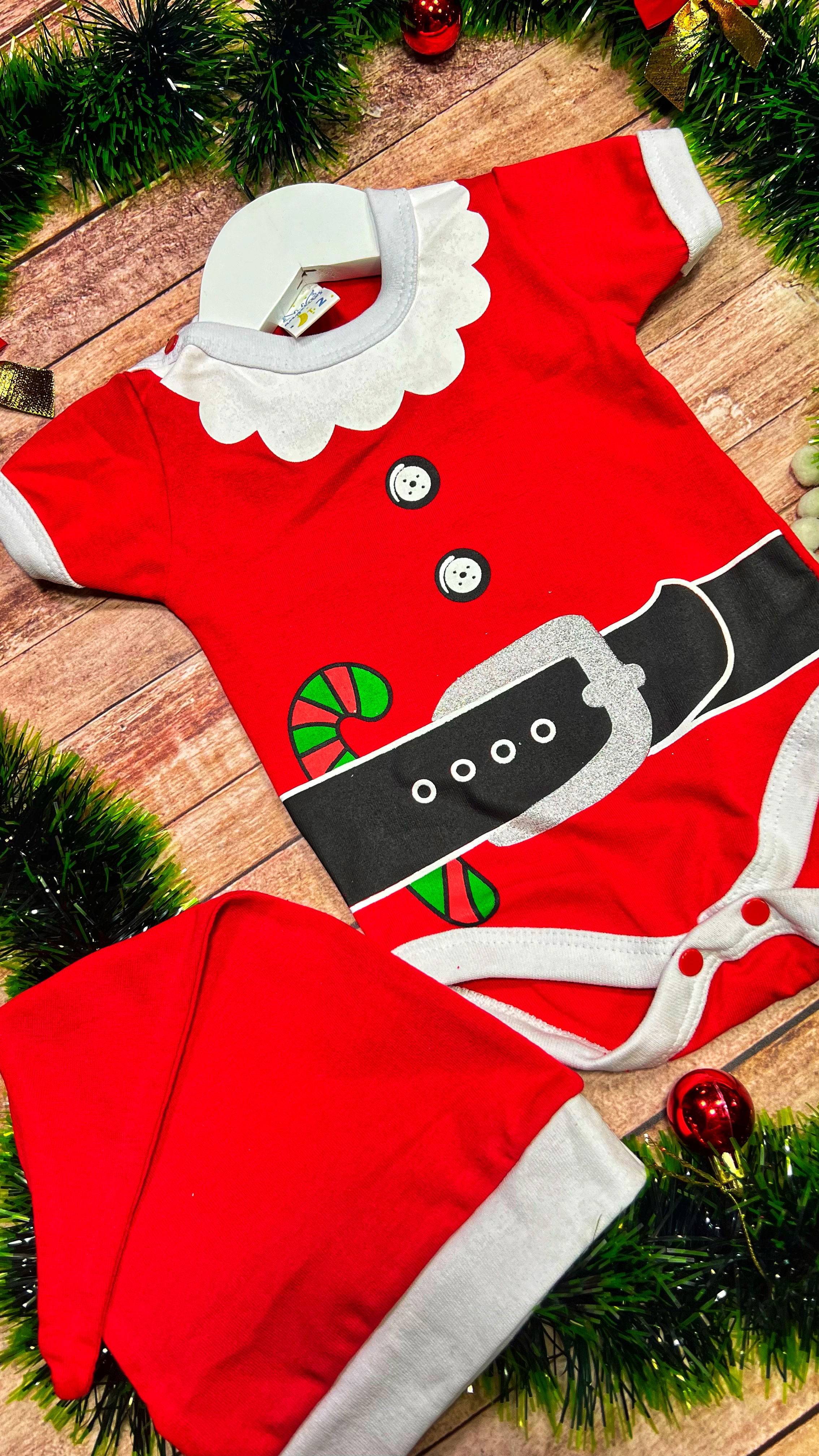 Nuestro dúo Santa combina un body y gorrito temático, perfectos para una linda sesión de fotos Navidadeñas con un toque divertido y lleno de ternura. 👶