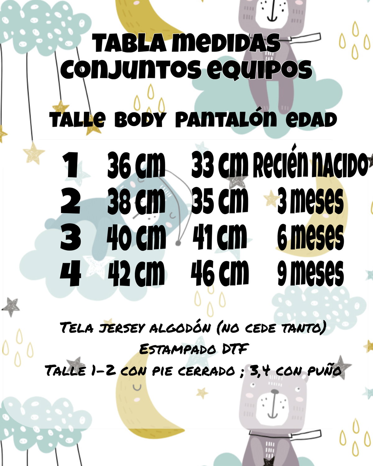 Incluye body con broches metalicos , pantalon y gorro o babero